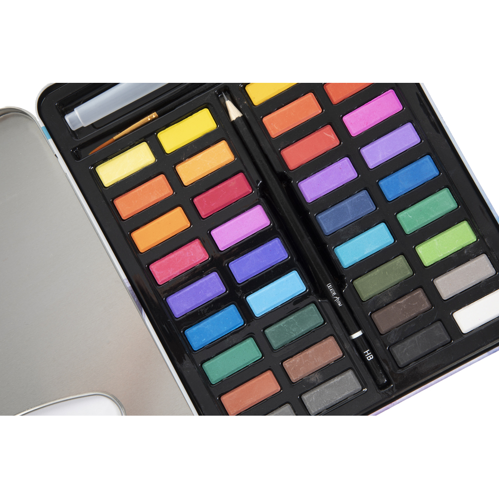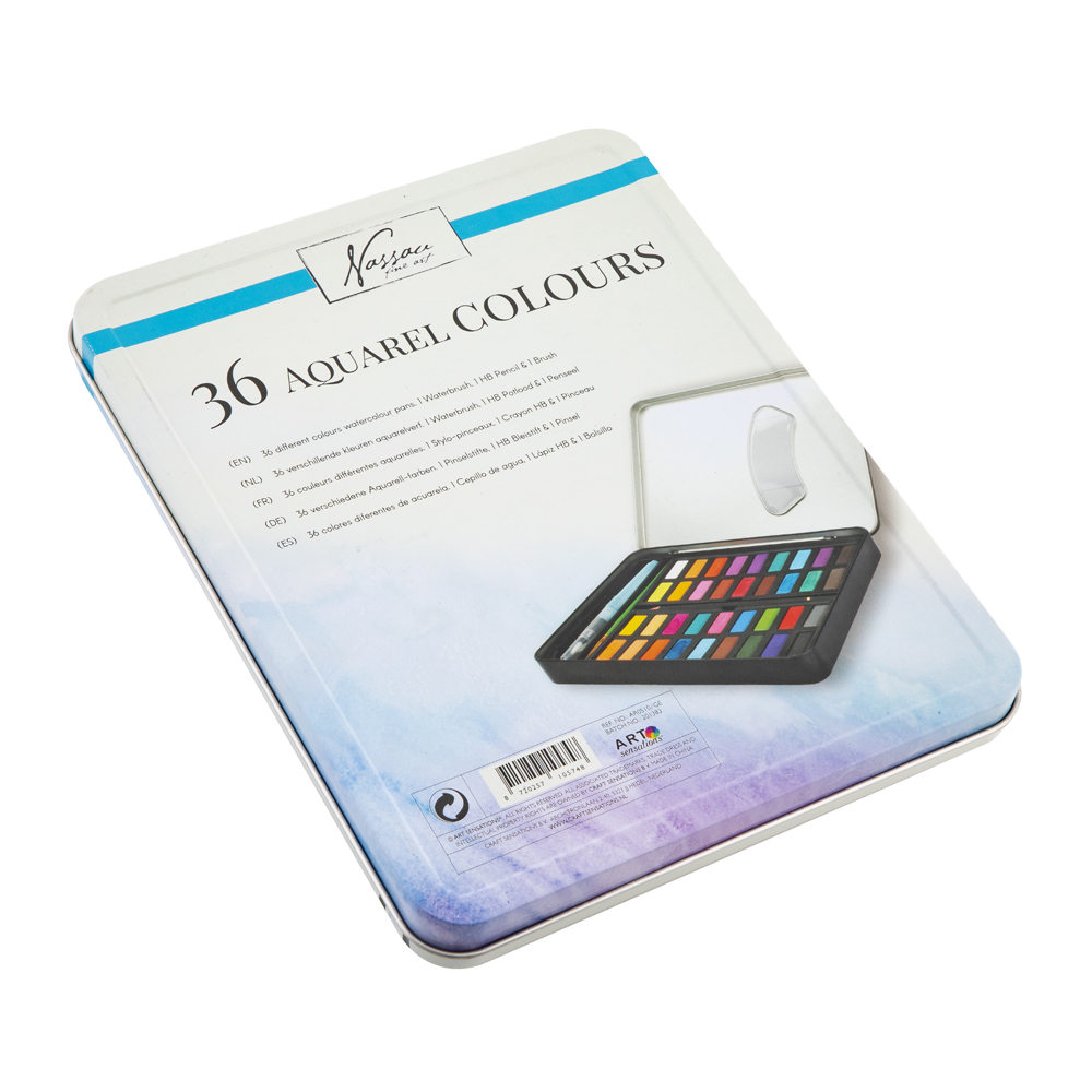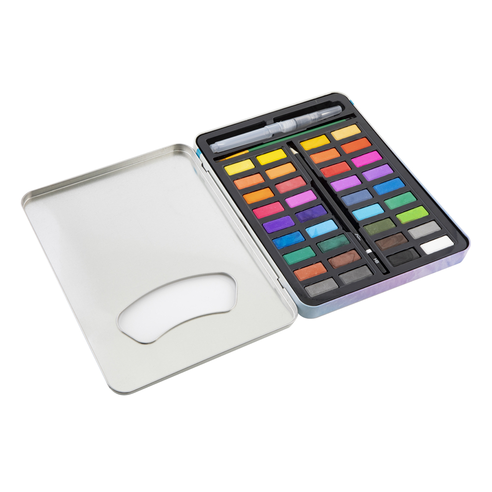 Acuarele de inalta calitate, in cutie practica din plasticSpecial concepute pentru incepatori sau artisti pasionati de picturaAmbalarea in cutie practica si pensula cu rezervor ofera mobilitate si posibilitatea de a o utiliza chiar si in locuri in care nu dispuneti de o masa de lucruPigmenti de calitate, solubili in apaPaleta (capacul cutiei) de amestecare culori este detasabila, pentru curatare usoaraCulori luminoase, intenseNumar culori: 36 culori