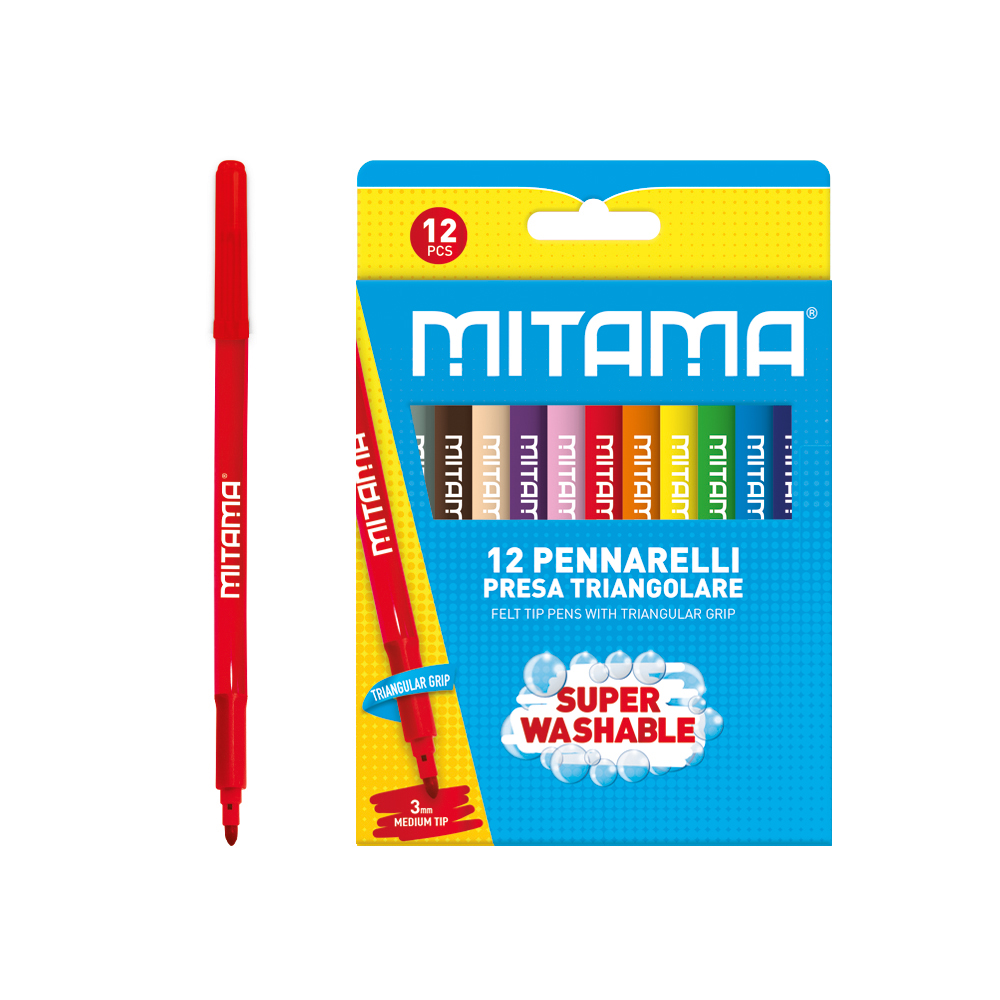 Descopera setul de 12 carioci lavabile triunghiulare Mitama, perfect pentru creativitatea celor mici. Aceste carioci sunt usor de folosit si ofera o experienta placuta de desenat.