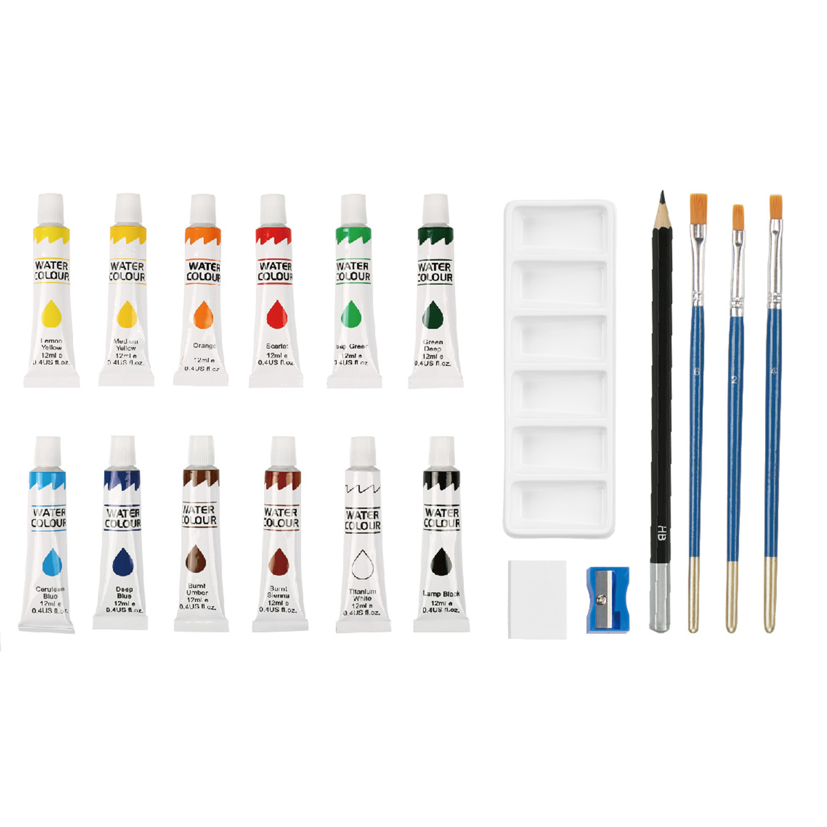 Set Memoris-Precious, tempera pe baza de apa cu accesorii: 12 culori 3 pensule 1 ascutitoare 1 radiera 1 creion 1 paleta amestec culori