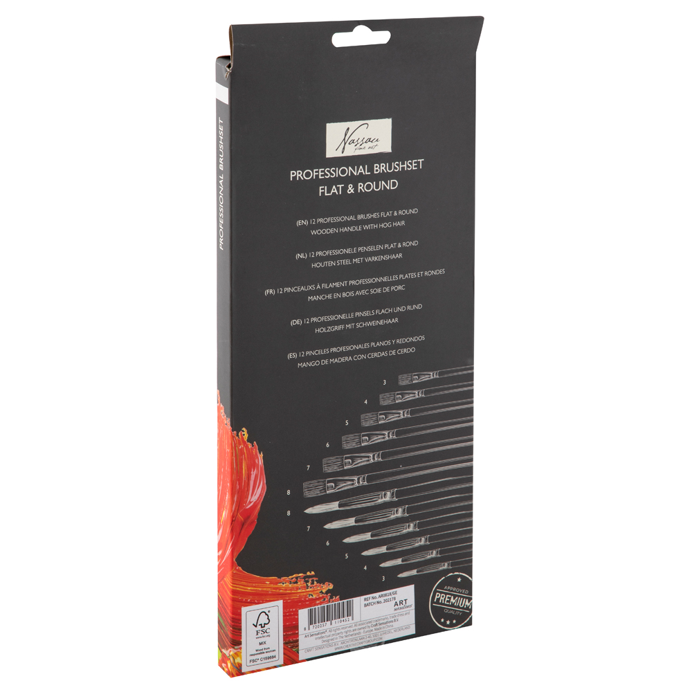 Set Nassau Fine Art, 12 pensule profesionale, diverse dimensiuni