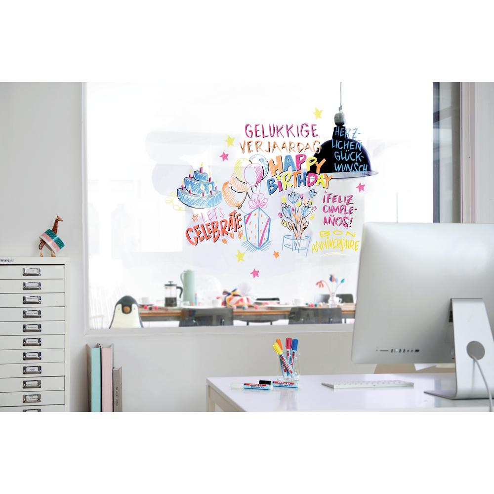 Transforma orice suprafata de sticla intr-un loc pentru notite cu markerul edding 95. Acest set de markere colorate este perfect pentru sesiuni de brainstorming in birou sau pentru a lasa mesaje rapide pe oglinda de acasa. Suprafata se curata usor cu o carpa uscata, permitandu-va sa incepeti sa scrieti din nou.