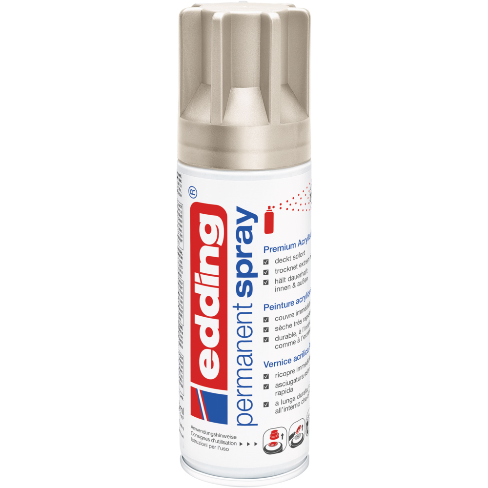 Transforma-ti proiectele de decorare si restaurare cu spray-ul de vopsea acrilica premium edding 5200, nuanta auriu sampanie. Acest spray este ideal pentru o varietate larga de materiale, precum sticla, lemn, metal, plastic, polistiren, hartie, tapet, panza, ceramica, piatra si rachita. Cu o formula de calitate superioara, vopseaua acopera imediat, se usuca extrem de rapid si este durabila atat la interior, cat si la exterior.
