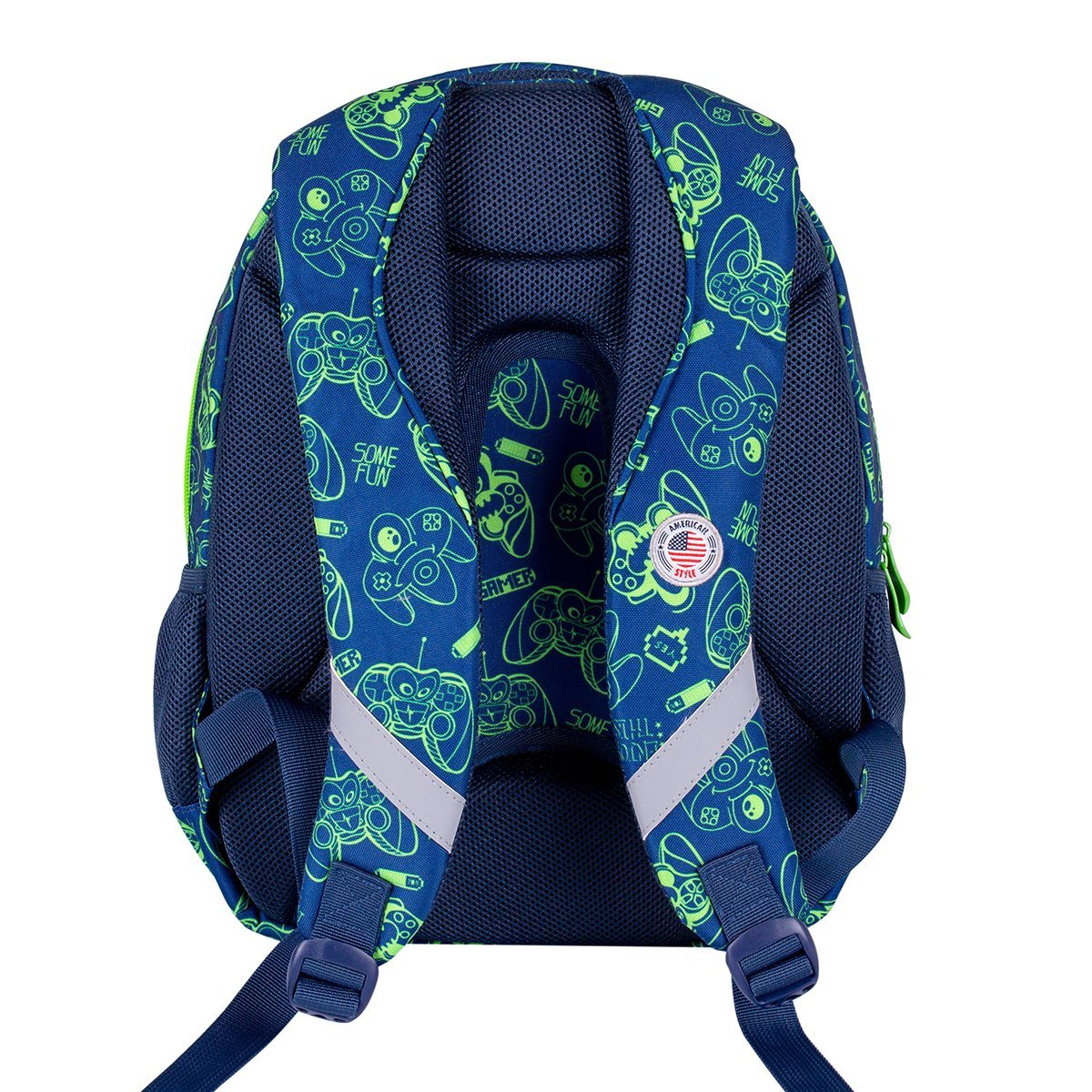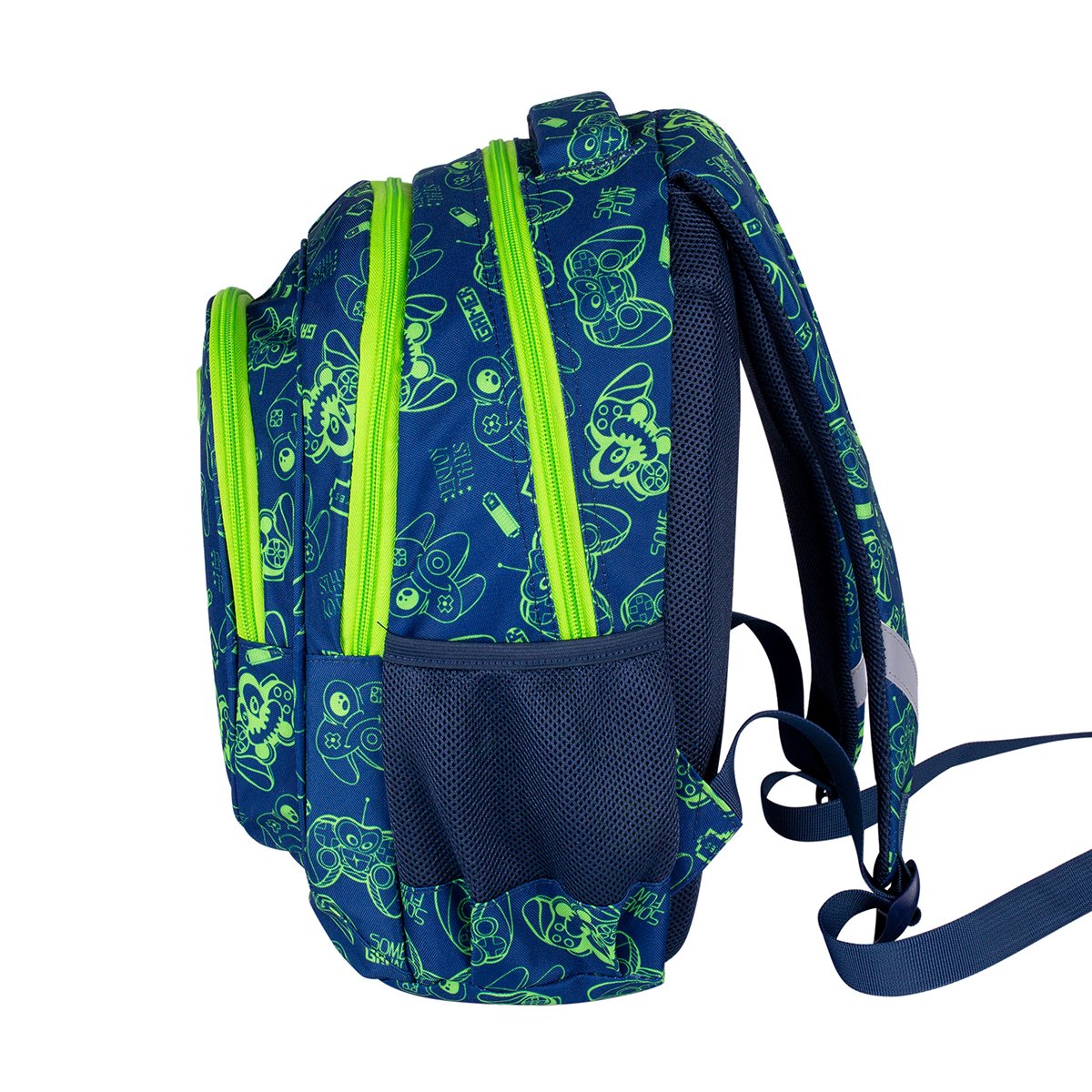 Caracteristici:• 3 compartimente• 2 buzunare exterioare din plasa• organizator cu breloc in compartimentul frontal• captuseala colorata, imprimata