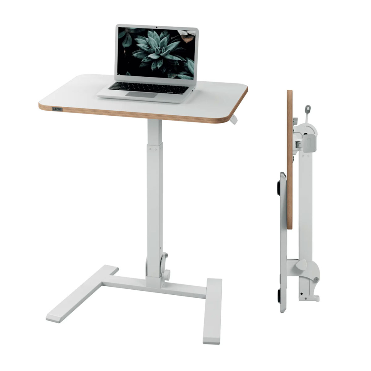 Birou ergonomic inteligent si reglabil, potrivit pentru spatii mici si lucru flexibil/temporar; se pliaza la 16 cm latime si este usor de mutat, configurat si plasat oriunde.