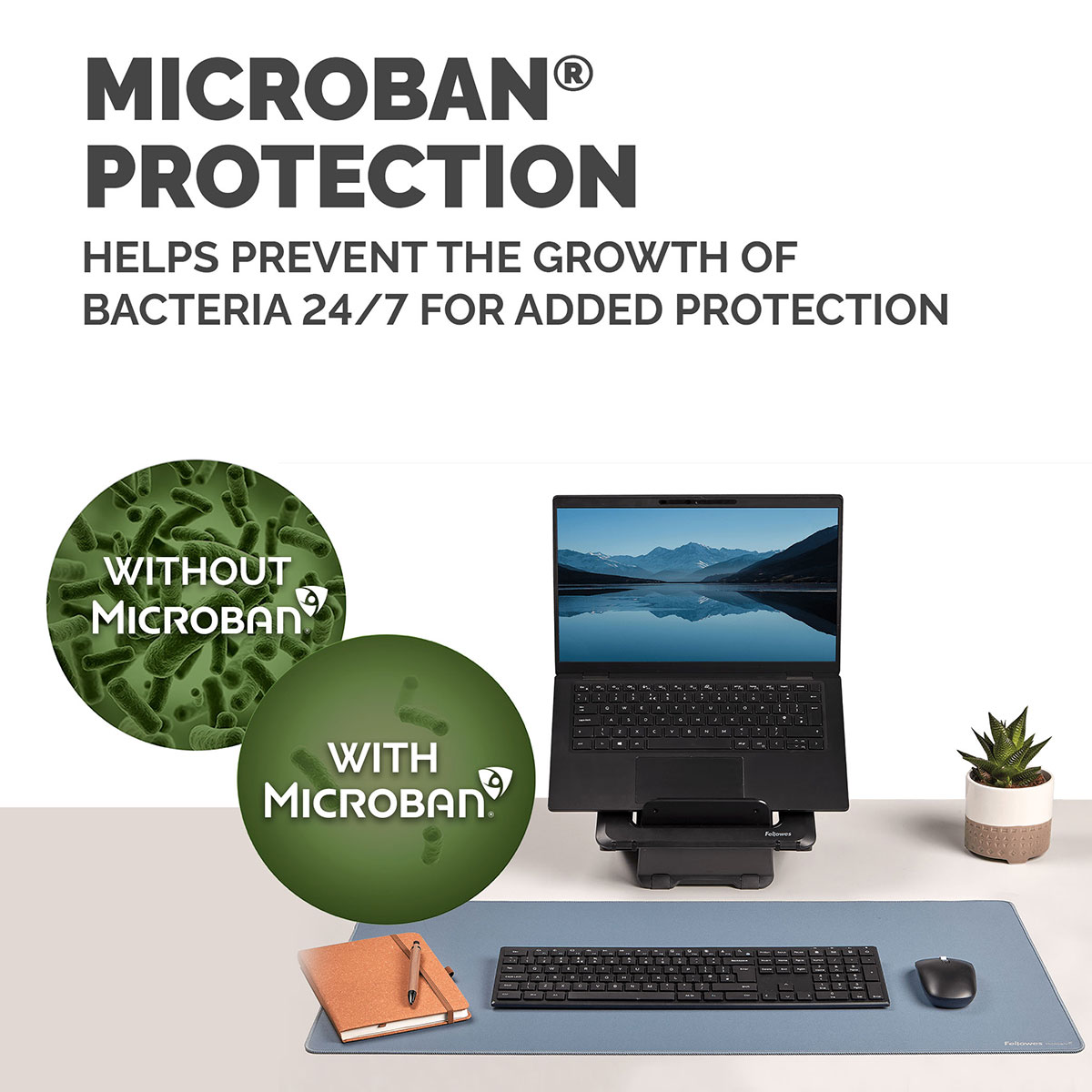 Protectia Microban incorporata ajuta la prevenirea dezvoltarii bacteriilor si actioneaza 24/7 pentru un nivel suplimentar de protectie a produsului. Este realizat din 83% material reciclat post-consum si este conceput pentru utilizare indelungata.