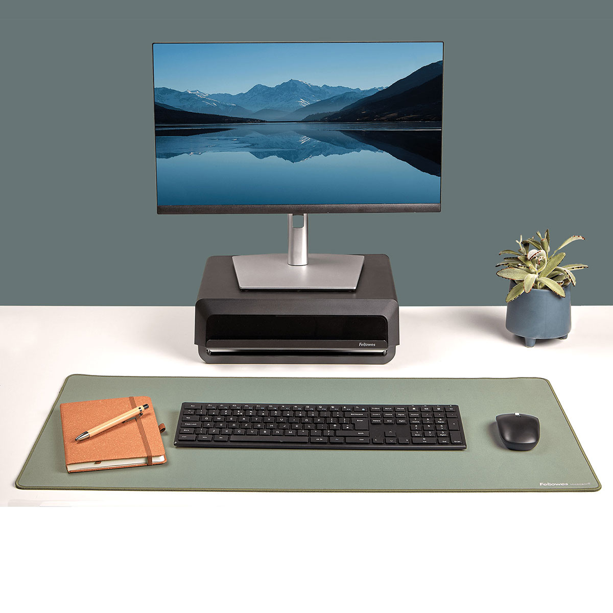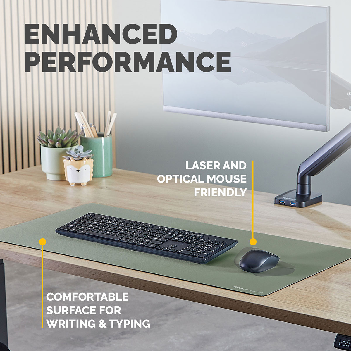 Suportul mare pentru birou protejeaza suprafata de lucru impotriva murdariei si zgarieturilor si ajuta la crearea unei zone fara reflexii. Ofera confort sporit la scris si tastat si poate imbunatati performanta mouse-ului.