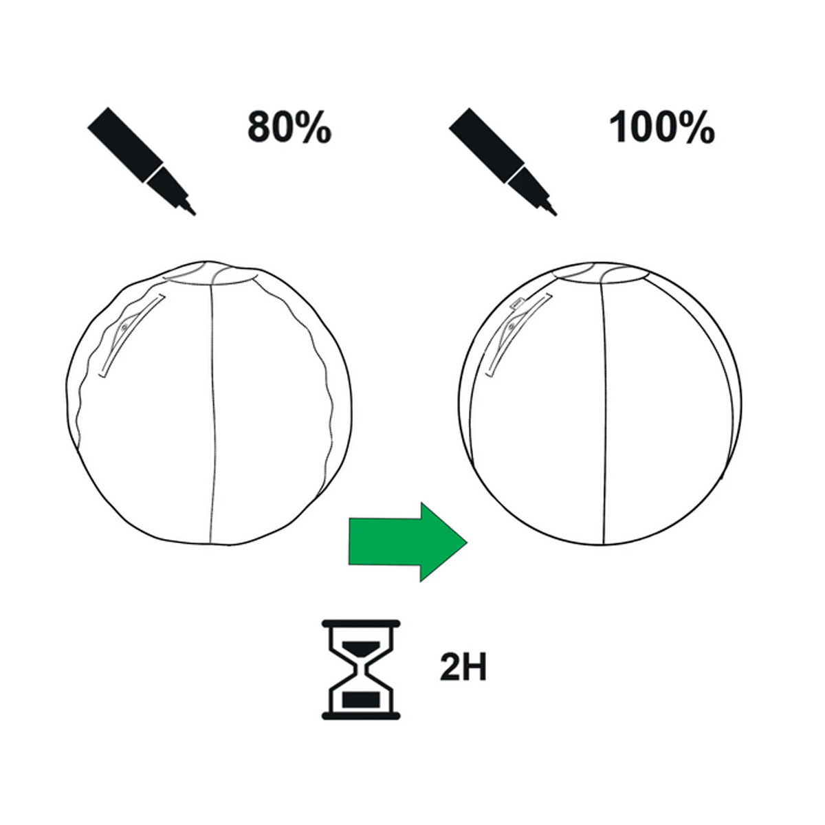 • Alternati intre minge si un scaun la fiecare 30 de minute pentru a imbunatati postura, flexibilitatea si pentru a ajuta la ameliorarea durerilor de spate. Asigurati-va ca mingea este umflata corect conform manualului. Testat si recomandat de Institutul German IGR pentru Sanatate si Ergonomie, conform DIN 26800 EN ISO 15537.
