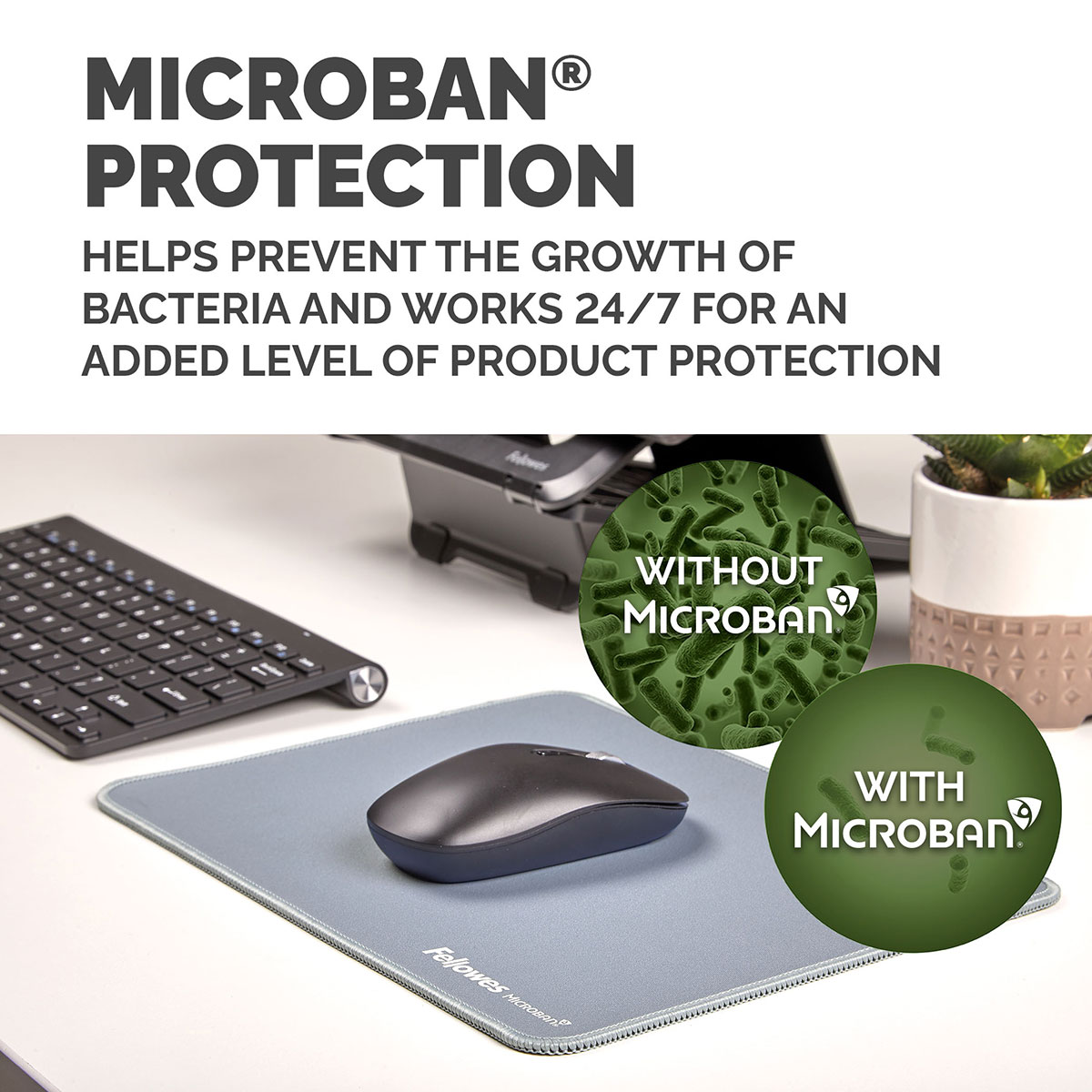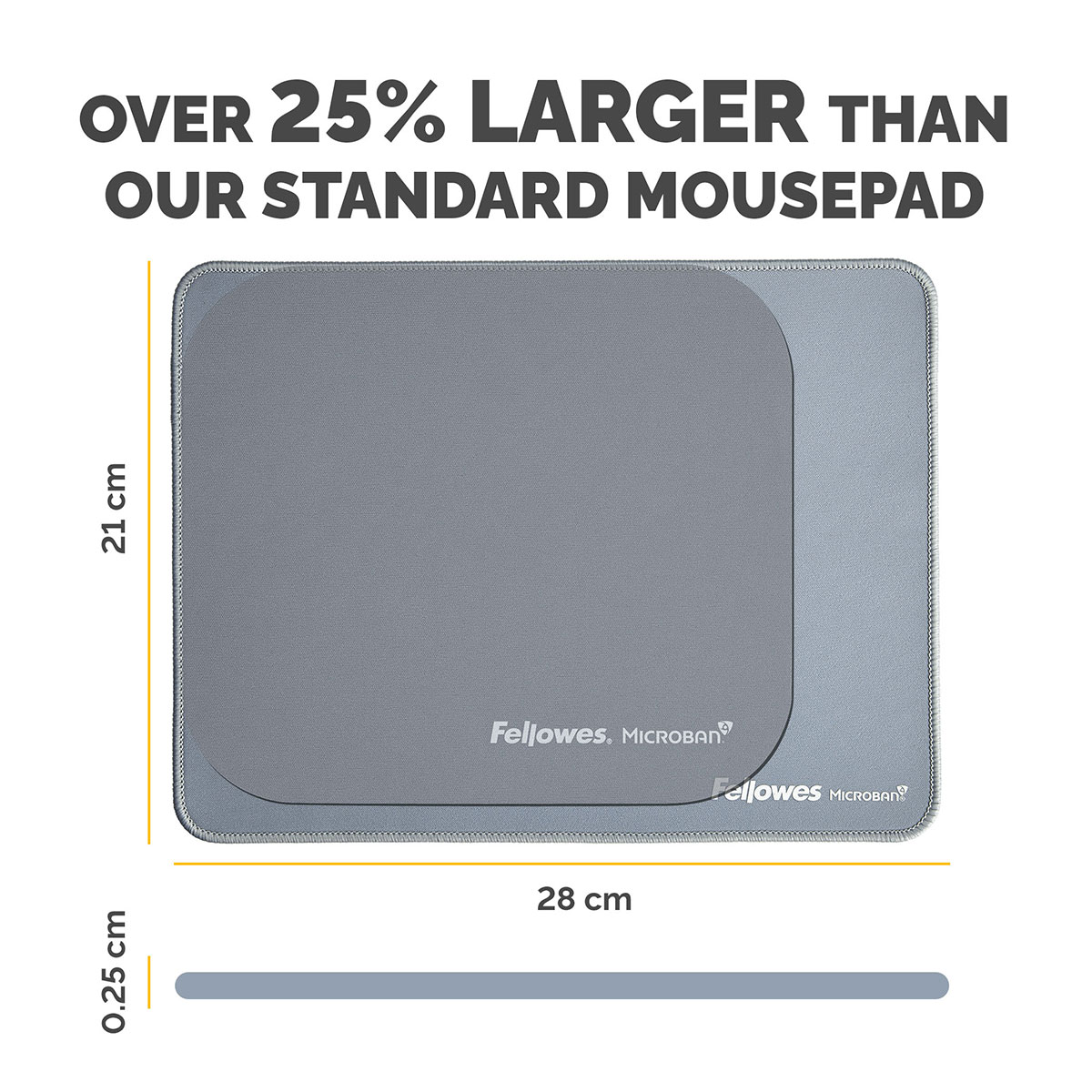 Mousepad extra mare, cu peste 25% mai mare decat mousepad-urile standard, conceput pentru a incuraja miscari mai ample si a reduce miscarile repetitive mici care pot provoca disconfort la incheietura mainii. Protejeaza biroul si imbunatateste performanta mouse-ului, fiind optimizat pentru mouse-uri optice si laser.