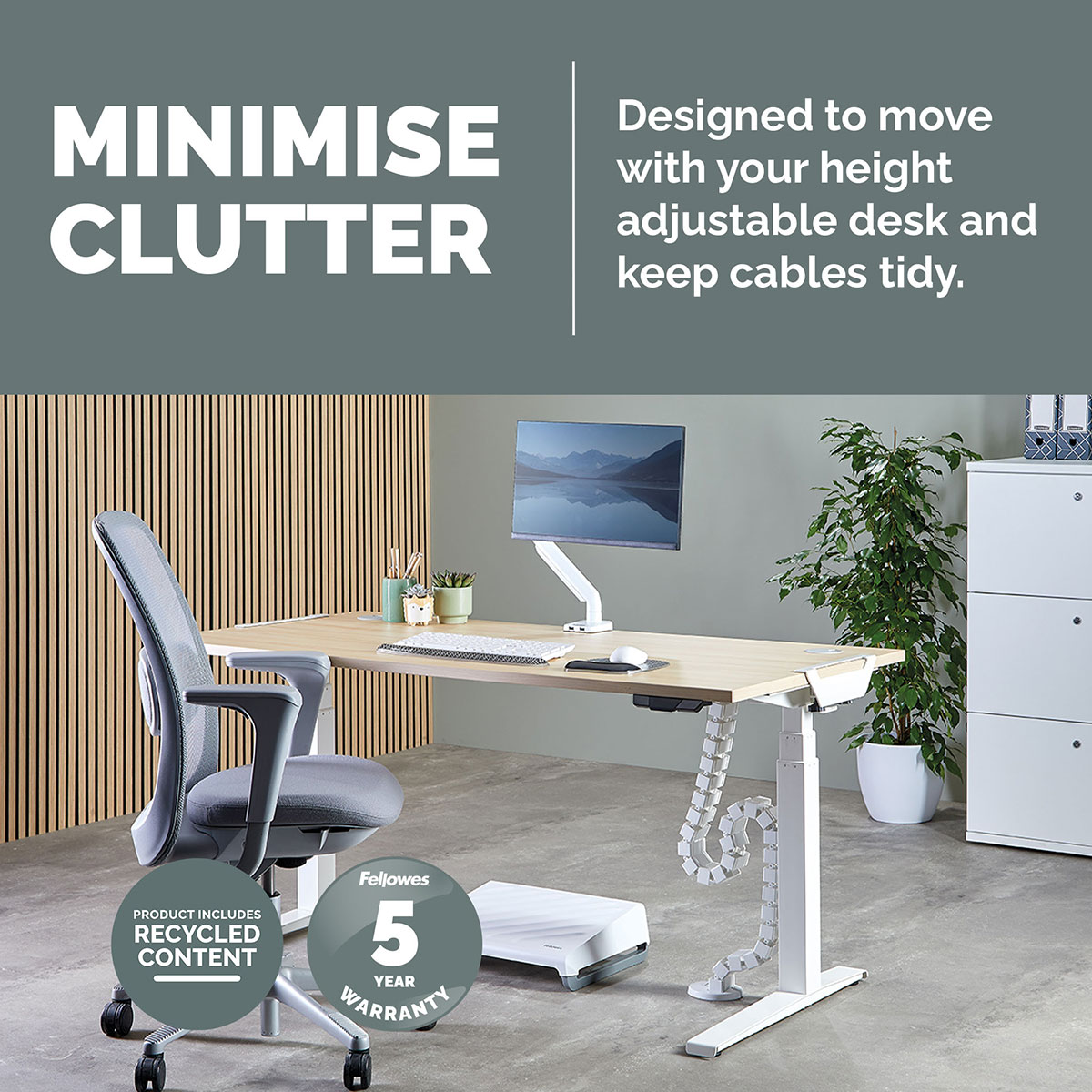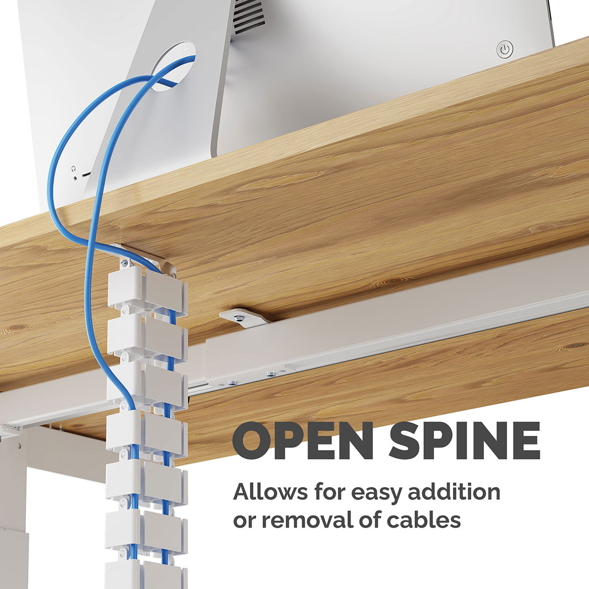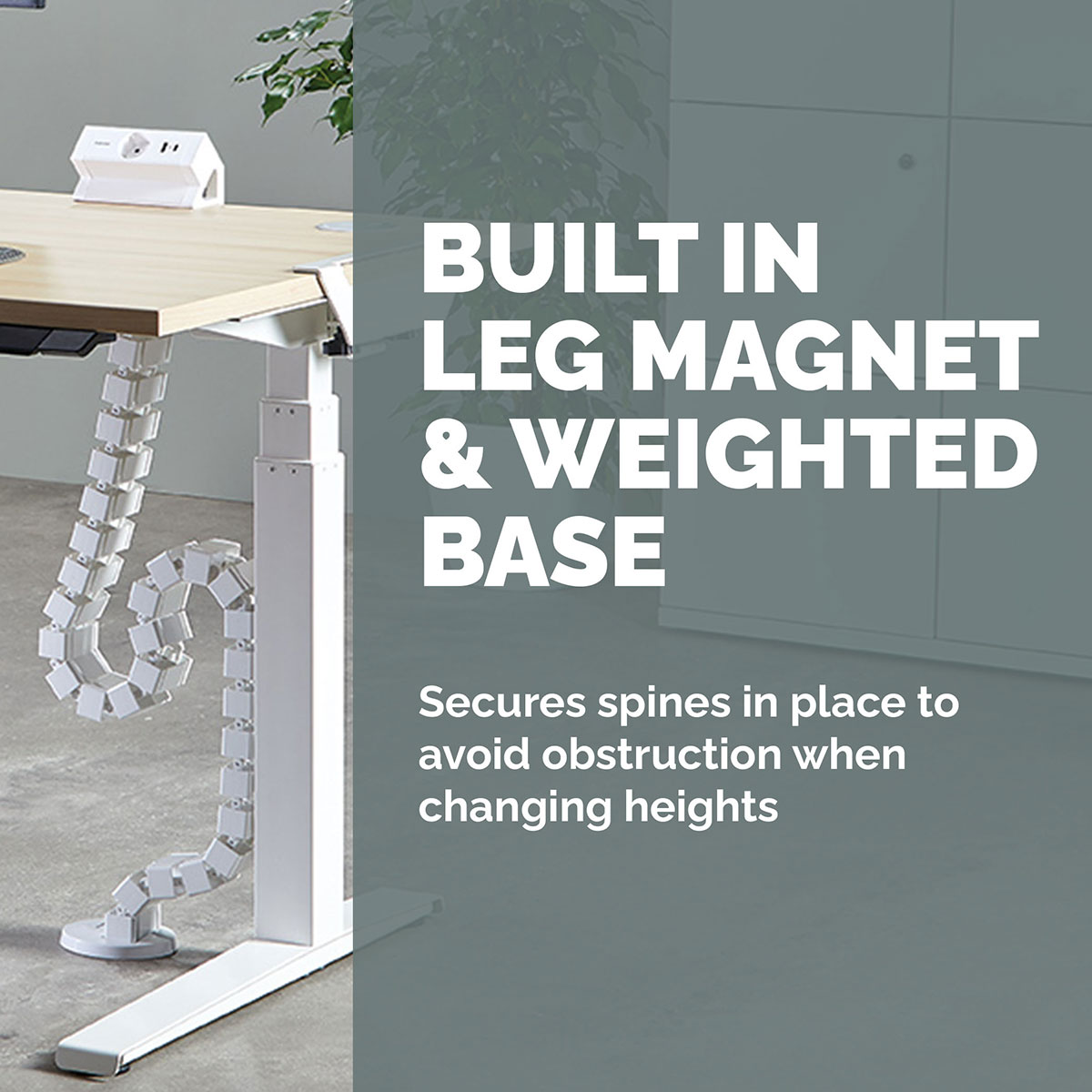 CableSpine te ajuta sa organizezi rapid cablurile de la podea pana la birou, pentru un spatiu de lucru mai ordonat. Structura flexibila, tip mufa, se adapteaza usor birourilor reglabile pe inaltime, miscandu-se odata cu modificarea pozitiei biroului.