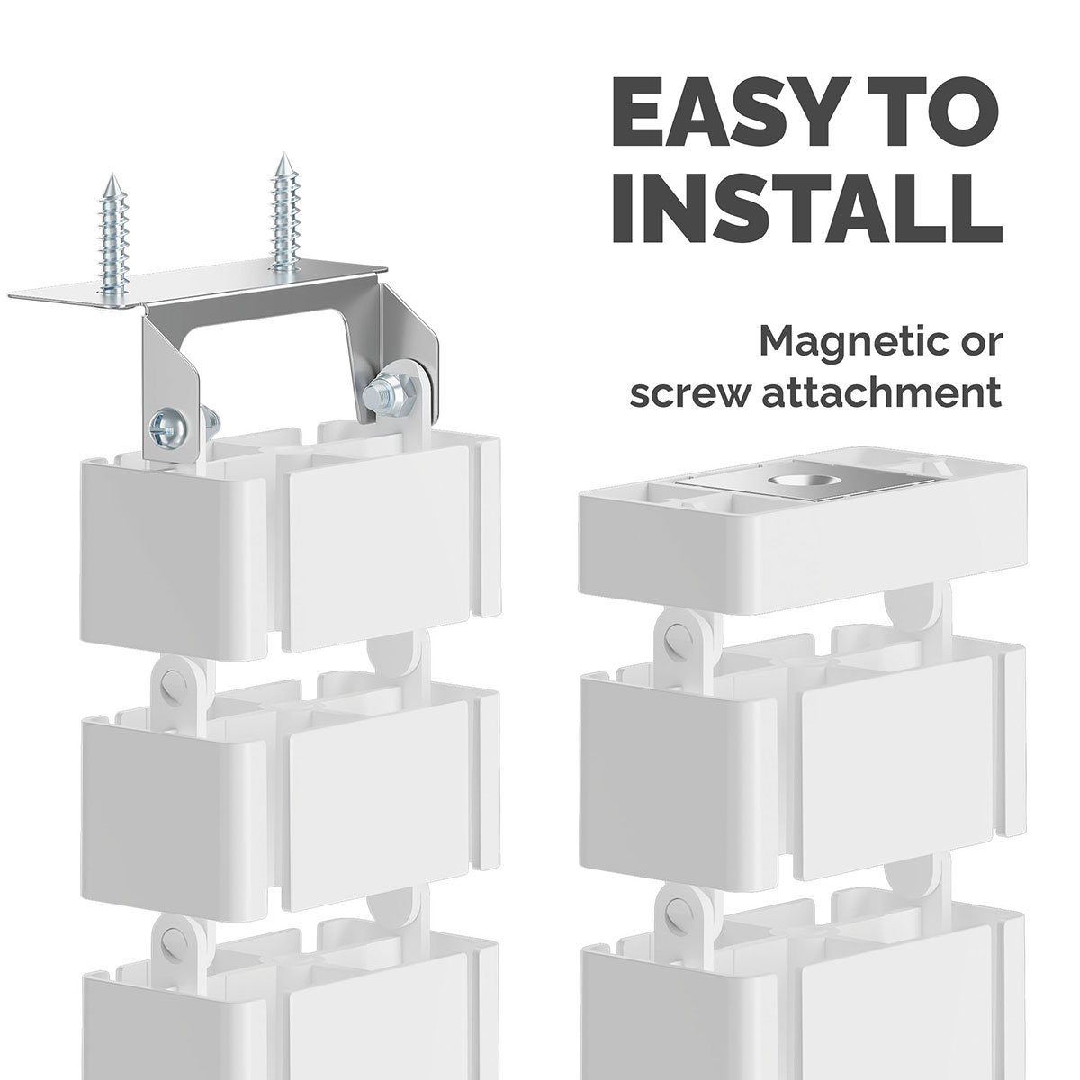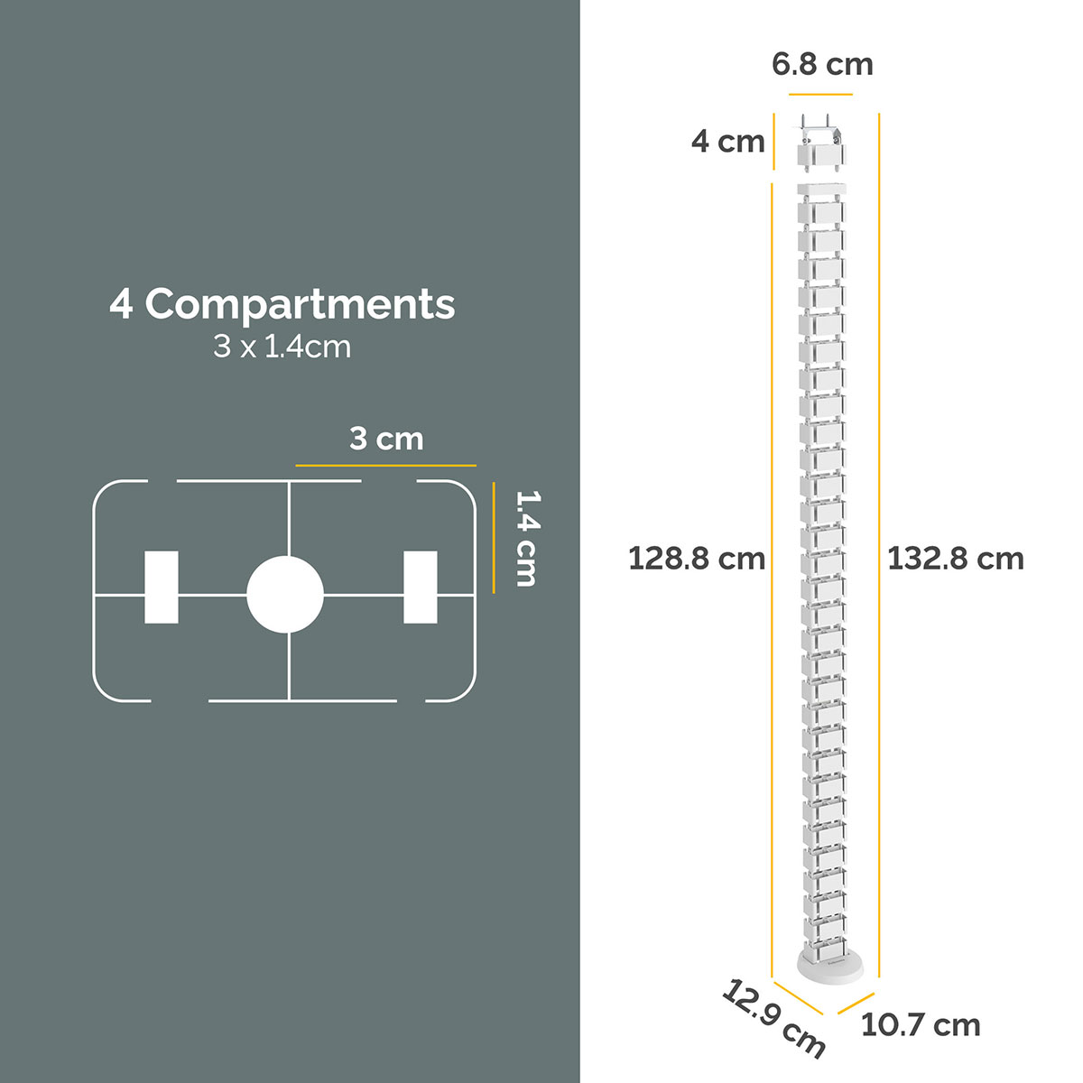 Are compartimente separate pentru a mentine cablurile aranjate, iar mufele se deschid usor pentru adaugarea sau scoaterea cablurilor. Se poate ajusta pe inaltime prin detasarea si reasamblarea sectiunilor, iar baza grea si magnetul integrat contribuie la o fixare stabila.