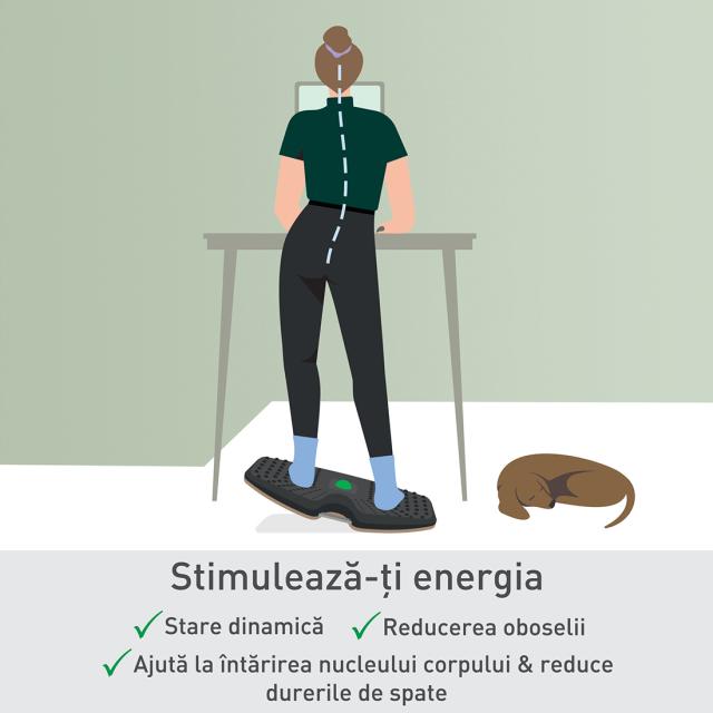 Placă de echilibru activă premium, ergonomică, pentru birouri reglabile pe înălțime și exerciții de fitness. Concepută pentru a întări mușchii trunchiului, a îmbunătăți postura, a reduce oboseala și a crește nivelul de energie.