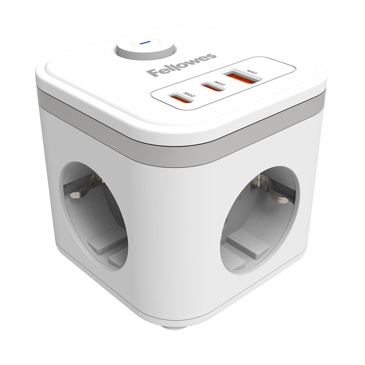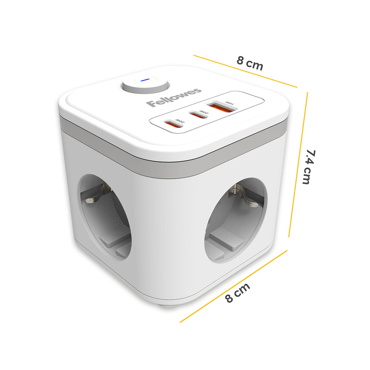 Cubul portabil Power Cube este o solutie compacta care economiseste spatiu si ajuta la alimentarea mai multor dispozitive, reducand aglomerarea din jurul prizelor. Forma cubica ofera acces mai usor la conectare si mai mult loc pentru stechere si incarcatoare.