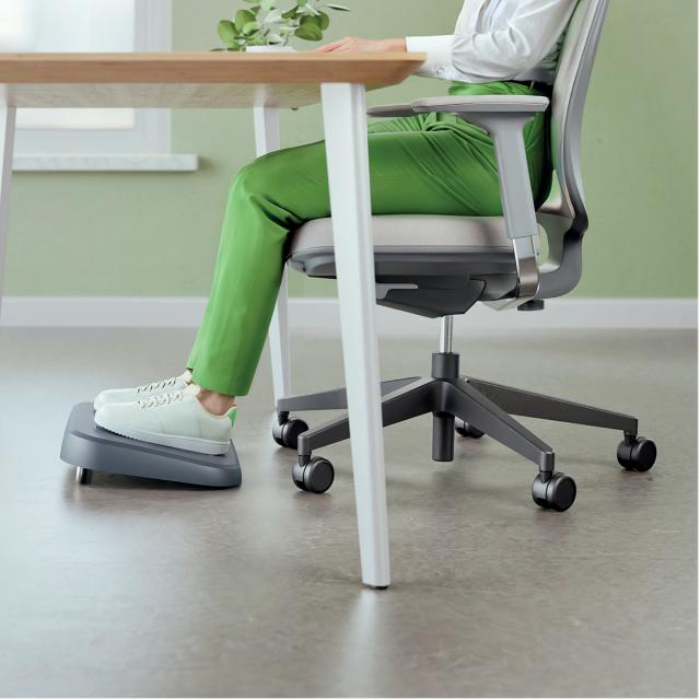 Imbunatatiti-va confortul si reduceti impactul asupra mediului inconjurator cu ajutorul suportului ergonomic Leitz Ergo ajustabil pentru picioare.