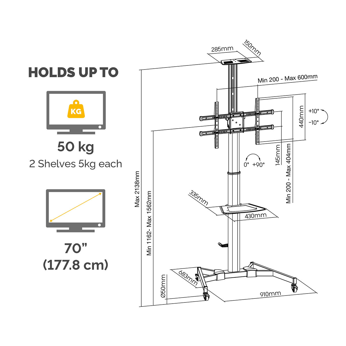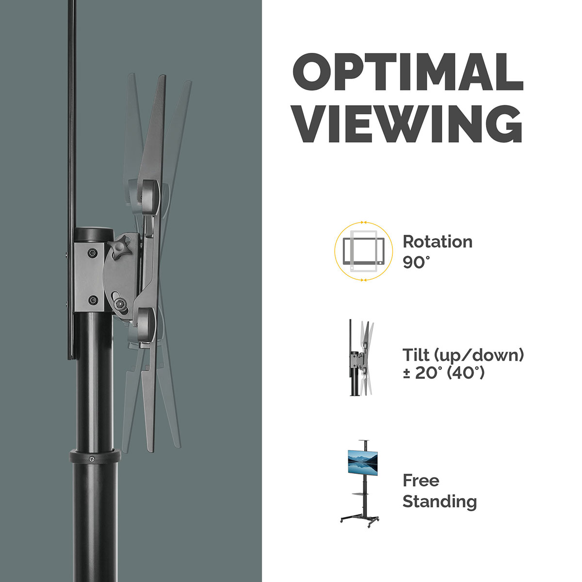 Suportul TV portabil este ideal pentru prezentari, videoconferinte si sesiuni de colaborare, oferind mobilitate si flexibilitate in orice spatiu. Cele 4 roti robuste permit mutarea usoara, iar mecanismul de blocare ajuta la prevenirea miscarii accidentale.