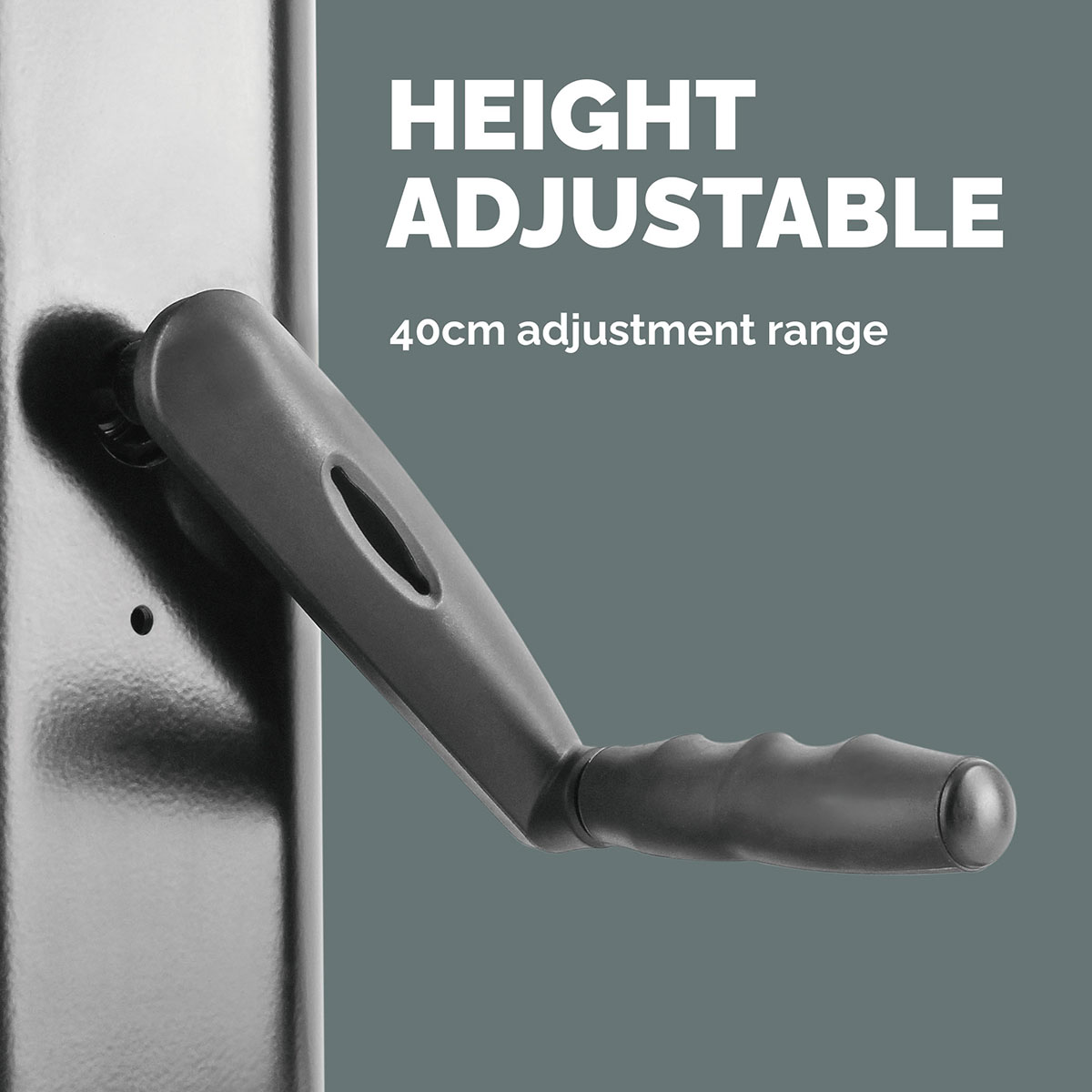 Reglarea inaltimii se face simplu, prin mecanism cu manivela (cursa de 40 cm). Suportul permite orientarea ecranului atat pe orizontala, cat si pe verticala, cu inclinare de pana la 20? pentru reducerea stralucirii, iar sistemul integrat de organizare a cablurilor mentine un aspect ordonat.