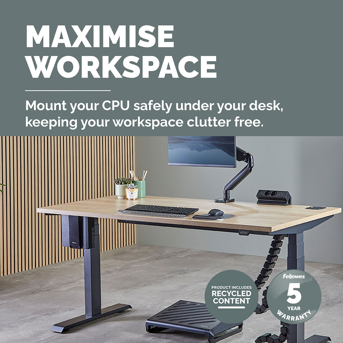 Mentine statia de lucru ordonata si maximizeaza spatiul disponibil prin montarea in siguranta a procesorului thin client sub birou. Sistemul de fixare cu suruburi permite instalarea usoara, iar constructia deschisa ajuta la o mai buna circulatie a aerului si la acces rapid la porturile dispozitivului.