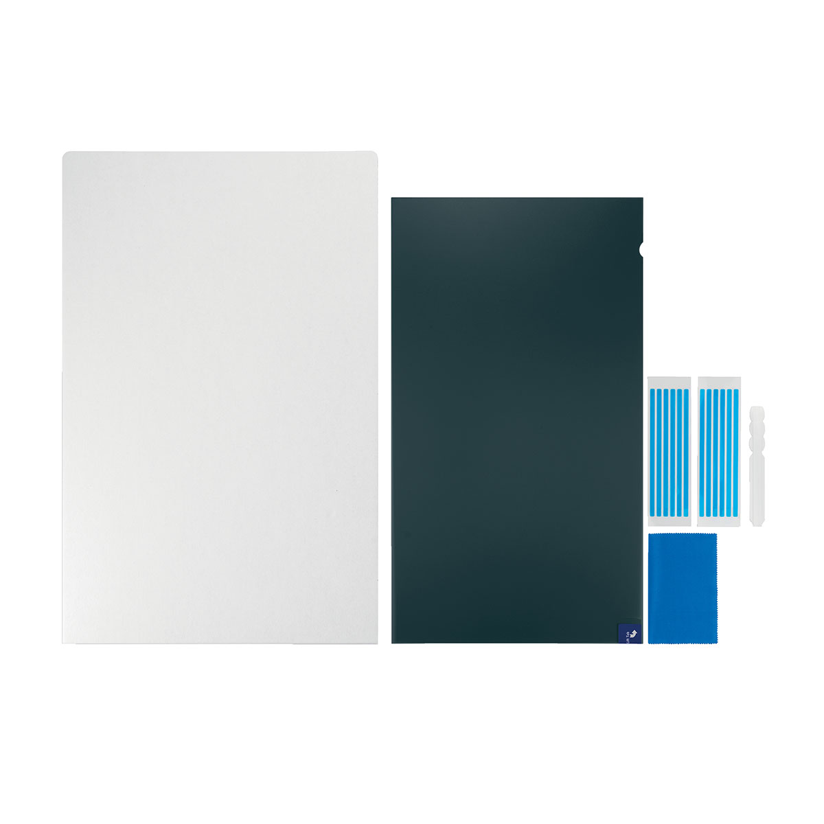 Designul reversibil include o fata mata pentru reducerea amprentelor si o fata lucioasa pentru claritate optima. Dispune de strat anti-reflex pentru minimizarea stralucirii si este proiectat pentru durabilitate, fiind rezistent la zgarieturi si testat pentru protectie la curatare de nivel militar.