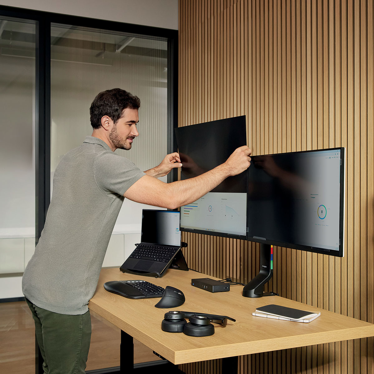 Filtru de confidentialitate pentru ecran, ideal pentru activitati care necesita un nivel ridicat de detaliu, oferind protectie vizuala prin limitarea unghiului de vizualizare la ?30°. Contribuie la reducerea oboselii ochilor prin filtrarea luminii albastre cu pana la 28% si poate sustine o calitate mai buna a somnului.
