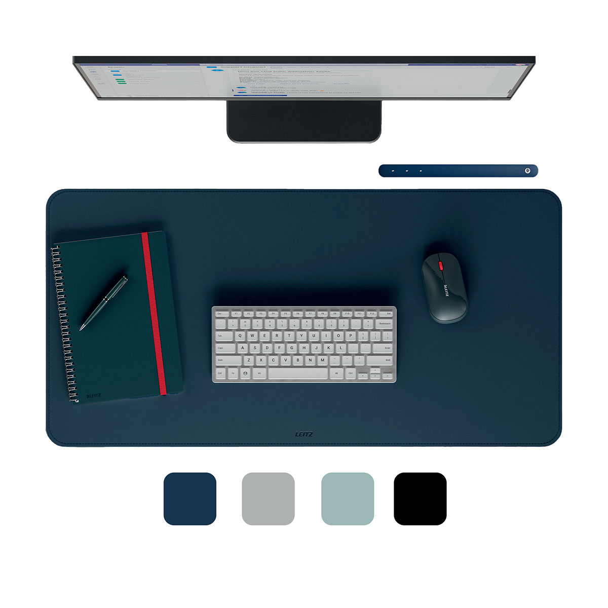 Covorul de birou Leitz cu suprafata mare de 80 x 40 cm iti mentine spatiul de lucru ordonat si protejeaza biroul de zgarieturi, pete si lichide varsate. Finisajul mat si designul minimalist, cu colturi rotunjite, se potrivesc usor in orice setup de lucru sau gaming.