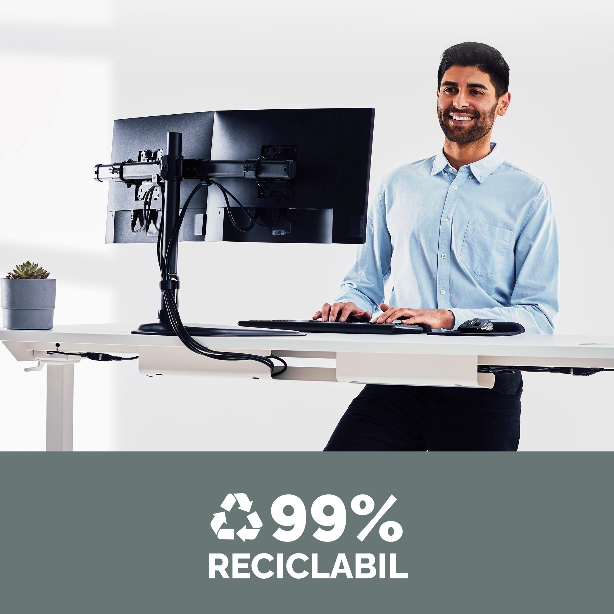 Designul independent faciliteaza o configurare optima a bratului monitorului in spatii care nu permit montarea cu clema sau ghidon.