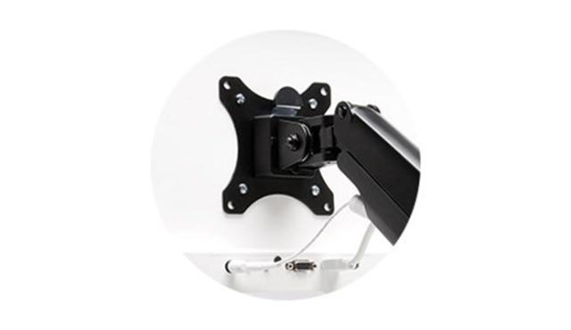 Sistem de gestionare a cablurilorSistemul de gestionare a cablurilori organizeaza si ascunde cablurile in timp ce bratul ridica monitorul eliberand spatiu valoros pe birou.