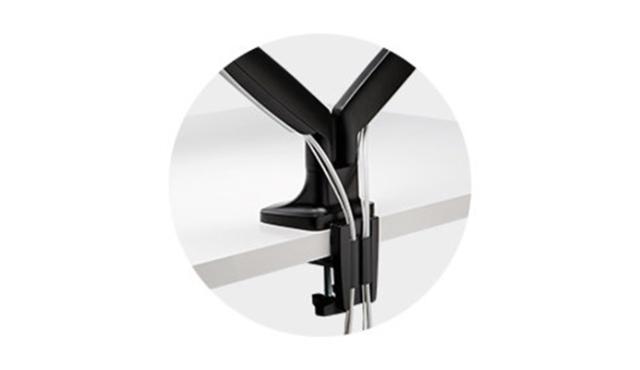 Usor de instalat Include placă VESA® detasabila cu eliberare rapidă (75/100 mm), clemă tip C (grosimea biroului: 10-85mm și opțiuni de instalare a clemei cu diametru: 10,5-50mm) și set de instrumente inclus pentru simplificarea instalarii