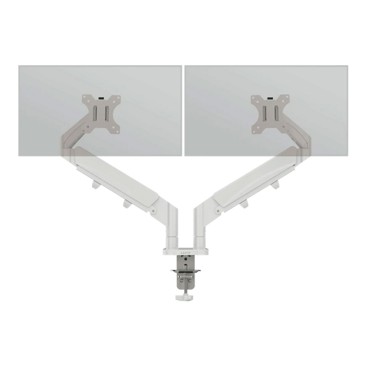 Suport pentru monitor dublu care poate imbunatati postura, alinierea ochilor si confortul gatului si umerilor atunci cand inaltimea monitoarelor este reglata corect.