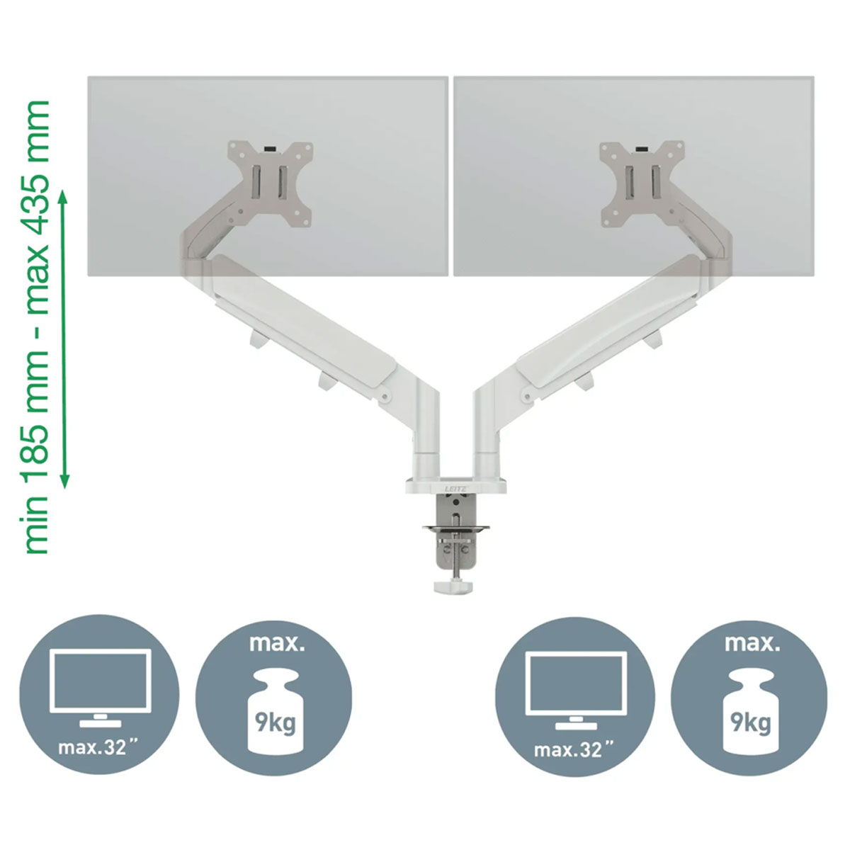 Design puternic si stabil pentru a sustine doua monitoare plate sau curbate de 17–32, fiecare cantarind pana la 9 kg (19,8 lbs).