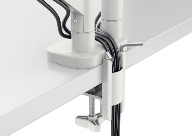 Usor de instalat! cu placa Vesa® detașabilă cu eliberare rapidă inclusă (75 și 100 mm) și clemă în C din cauciuc siliconic, care va reduce vibrațiile și va proteja suprafața biroului sau prin orificiul pentru manșon (interval de grosime a biroului: 10–80 mm). Instrumente pentru asamblare și reglaje incluse